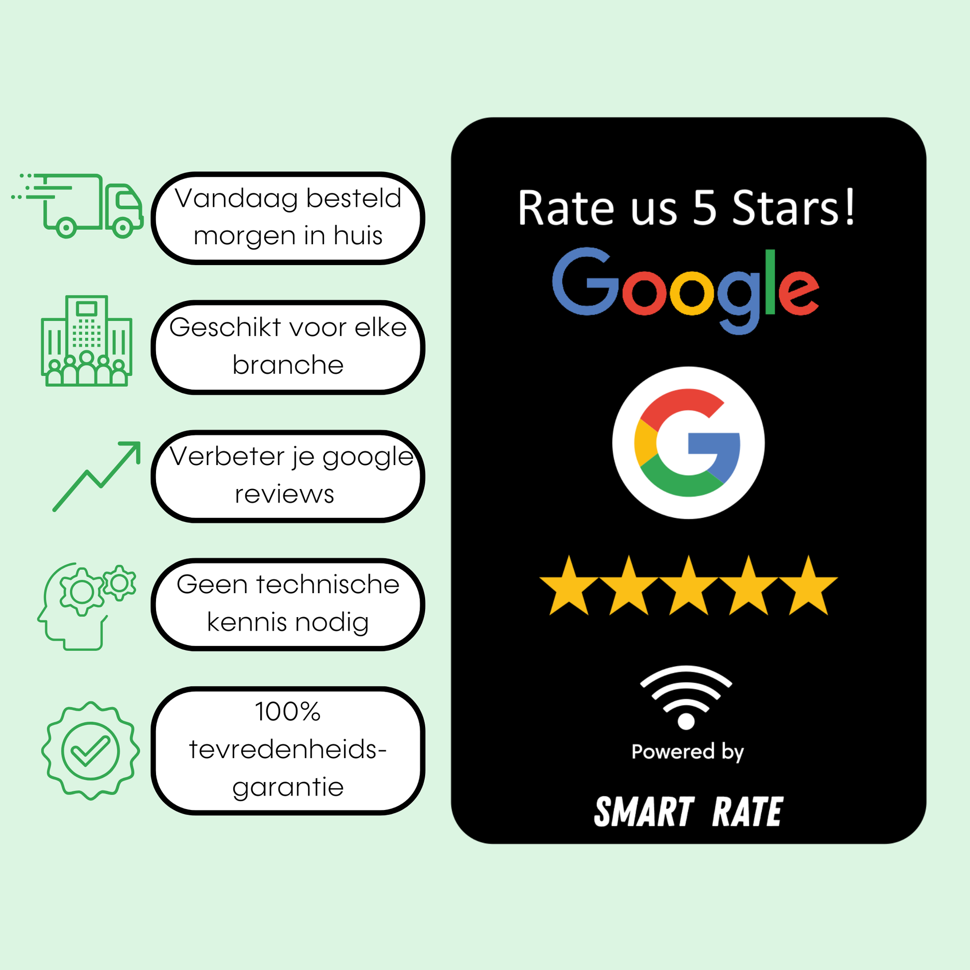 Goed nieuws! Er zit geen limiet aan het aantal reviews dat je kunt verzamelen met onze SmartRate review kaarten.